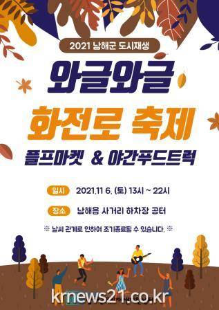 ▲ [사진=홍보포스터]남해군은 오는 11월6일 오후 1시부터 남해읍 사거리 버스하차장 옆 공터에서‘2021 남해군 도시재생 와글와글 화전로 축제’를 개최한다.