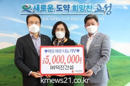 한편, 덕진건설(주)는 작년 10월에도 지역사회 어려운 이웃을 위해 1,000만 원 기탁 하는 등 꾸준히 나눔활동을 이어오고 있다.