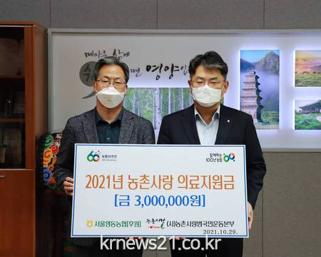 한편, 해당 의료지원금은 서울 영동농협의 후원으로 마련되었으며 서울 영동농협은 지난 2015년부터 나눔 경영의 일환으로 농촌 취약계층의 의료지원금을 조성해 농촌사랑운동본부에 기탁해왔다.