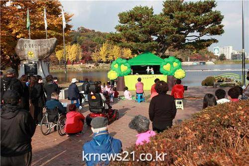 ▲ [사진제공 = 이천시]‘2021년 경기도 성평등기금사업’이 지원하고 이천가정・성상담소가 주관하는 거리 인형극(‘버스킹! 성평등을 보다’)을 2021년 11월 1일~2일 양일간 이천시 관내 설봉공원에서 진행되었다.