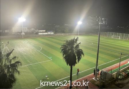 한경축구장은 그동안 야간 조명 시설 부재로 한경면 주민을 포함한 많은 이용객들이 불편을 겪어왔다.