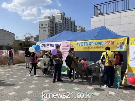 ▲ [사진제공 = 고성군]고성군공동육아나눔터 2호점(대표 제옥자)은 11월 6일 관내 거주하는 만 18세 미만의 자녀가 있는 양육가정을 대상으로 ‘함께해요! 육아!‘ 체험부스를 운영했다.