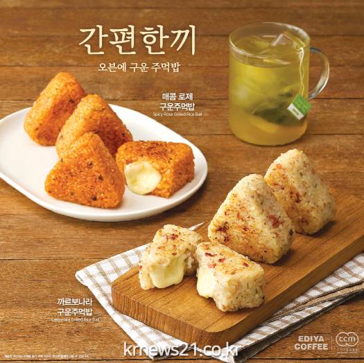 ▲ [이미지제공 = 이디야커피]이디야커피는 오는 11일 ‘구운주먹밥’ 2종을 출시하며 식사 대용 간편식 제품군을 강화한다.