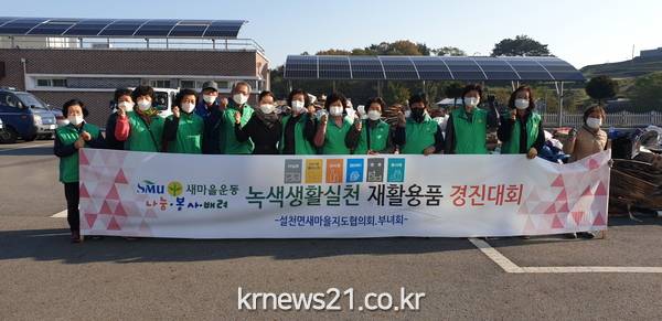 ▲ [사진제공 = 남해군]설천면새마을부녀회(회장 김연숙)는 15일 설천면종합복지회관 주차장에서 하반기 재활용품 경진대회를 개최했다.