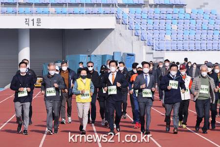 이날 행사는 허태정 대전시장과 권중순 대전시의장, 장종태 서구청장, 박용갑 중구청장, 황인호 동구청장, 이승찬 대전시체육회장 등이 참석한 가운데 운동장과 그 일대를 함께 걷는 행사로 진행됐다.