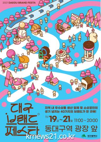 ▲ [사진=홍보포스터]대구시는 범정부 차원의 소비진작 행사인 코리아세일페스타에 이어 지역 내 소비 심리 회복의 불씨를 새롭게 지필 ‘2021 대구브랜드페스타(DAEGU BRAND FESTA 2021)’를 11월 19일(금)부터 21일(일)까지 3일간 동대구역 광장에서 개최한다.