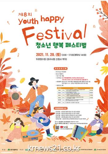 청소년의 건전한 놀이문화 확산과 가족 화합의 장 마련을 목표로 2013년부터 개최해 온 ‘청소년 행복 페스티벌’은 지난해 코로나19로 인해 취소됐으나, 올해는 코로나가 앗아간 청소년기의 추억을 회복할 수 있도록 옛 두류정수장(시 신청사 건립예정지)에서 개최된다.