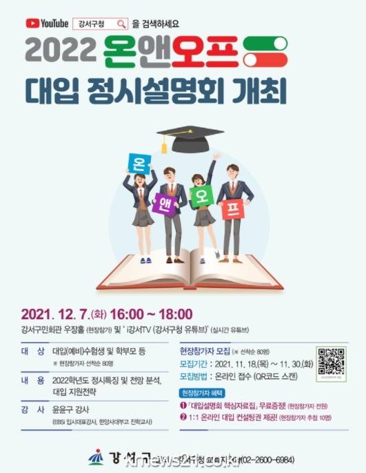 서울 강서구(구청장 노현송)는 입시 준비에 매진하고 있는 수험생과 학부모들을 위해 ‘2022학년도 대비 대입 정시설명회’를 오는 12월 7일 개최한다고 밝혔다.