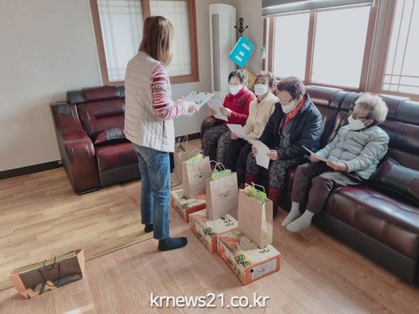 이번 평가회는 코로나19 확산 방지와 감염 예방을 위해 조별로 나누어 사업 참여자들의 만족도 조사, 소감, 애로사항 등을 청취하며 노인일자리사업을 마무리하는 시간을 가졌으며 참여자들의 노고를 격려하고자 감귤(5kg), 칫솔세트, 마스크 등을 지원했다.