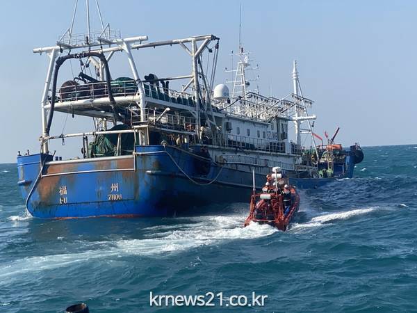 신고 접수 후 경비함정 및 구조대, 항공기를 급파해 확인결과 중국어선 승선원 전원