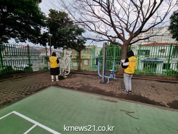 ▲ 사진=제주시제주시는 공원이용객의 안전과 체계적인 시설물 관리를 위해 신산공원 등 도시공원 130개소에 설치된 야외운동기구에 대한 전수조사를 실시하고 있다고 밝혔다.