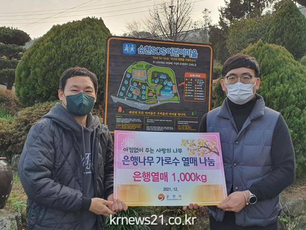 순천시(시장 허석)는 해마다 가을철 은행나무 가로수에서 떨어져 악취 및 통행 불편 등 민원을 발생시키는 은행열매를 수거하여 건조시킨 1톤의 열매를 어려운 이웃에 전달해 시민들의 호응을 얻고 있다.