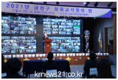 ▲ 사진=매일일보 / 금천구금천구(구청장 유성훈)는 12월 16일(목) 지역 140개 어린이집을 대상으로 2021년 보육교직원의 밤 ‘온(ON)라인으로 온(溫)기를 나누는 따뜻한 밤’ 행사를 실시했다.