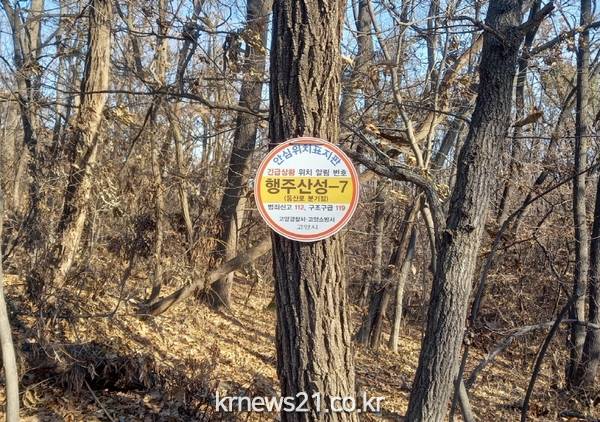 고양시(시장 이재준)가 행주산성누리길 안전 사고 발생시 탐방객이 쉽게 위치를 알 수 있도록 안심위치표지판을 설치했다고 20일 밝혔다.