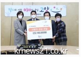 ▲ 사진=고양시고양시(시장 이재준)는 지난 23일 고양상공회의소(회장 권영기)에서 연말을 맞이하여 사랑의 성금 23,100,000원을 기탁했다고 밝혔다.