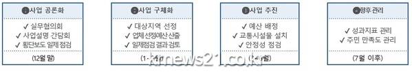 12월 말 제한속도 일제 점검을 시작으로 사업 대상지 선정, 교통시설물 설치, 주민 만족도 조사 등 총 4단계 추진계획을 수립하고 내년 6월까지 사업 완료를 목표로 하고 있다.