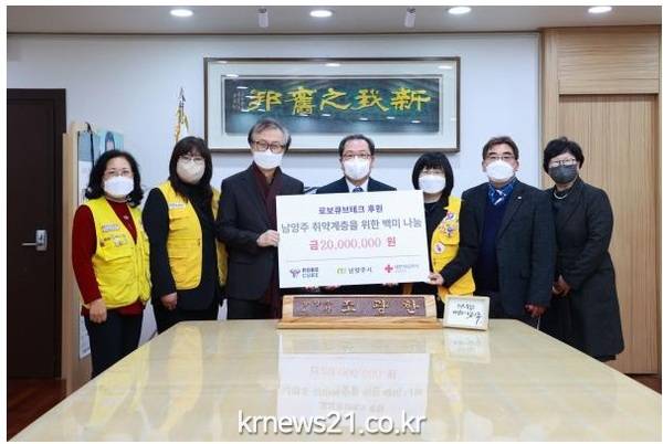 ▲ 사진=남양주시남양주시(시장 조광한)는 지난 27일 ㈜로보큐브테크(대표 김영석)가 대한적십자사 봉사회 남양주시지구협의회(회장 이영숙)에 2천만원의 기부금을 전달했다고 28일 밝혔다.