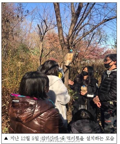 겨울철 산새들은 봄, 여름, 가을에 비해 줄어든 먹이로 인해 곤란을 겪는 경우가 종종 발생하고 특히 성미산과 같이 규모가 작은 도심 숲에서는 먹이 구하기가 더욱 힘들기 때문이라고 덧붙였다.