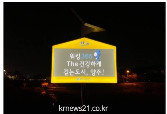 ▲ 사진=양주시양주시(시장 이성호)는 일상 속 시민들의 건강증진을 위해 걷기운동 활성화 환경을 조성하고자 2021년 걷기 좋은 길 7곳을 선정하고 태양광 LED 걷기운동 안내판을 설치했다고 밝혔다.