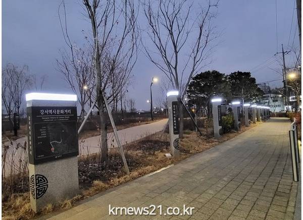 먼저 마곡지구에서 이어지는 양천로47길 초입에 설치된 ‘강서 역사문화 거리’임을 알리는 상징 조형물이 지나가는 이들의 시선을 사로잡는다.