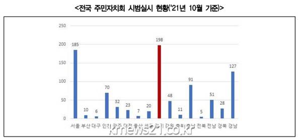 주민자치회는 2010년 ‘지방행정체제 개편에 관한 특별법’ 개정으로 법적 근거를 확보한 이후 2013년 시범사업을 시작해 지난해 10월 기준 전국 912개(전체 26%) 읍‧면‧동에서 운영되고 있다. 도내에는 198개로, 전국에서 가장 많다.