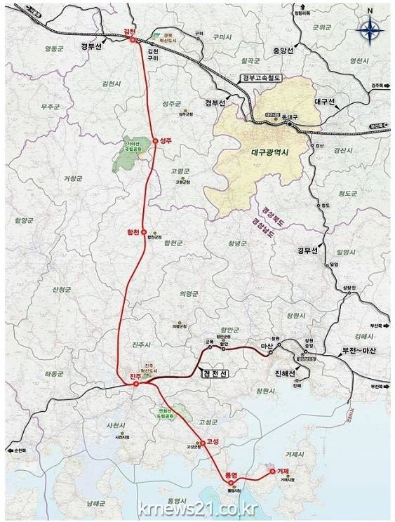 2027년 개통을 목표로 국비 4조8천15억원을 투입, 김천시에서 거제시까지 단선철도 177.9km(최고속도 250km/h)를 잇는 사업이다.
