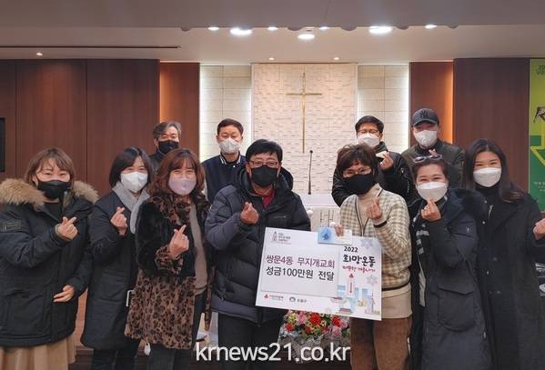 이날 성금을 전달한 이성모 담임목사는 “이웃의 따뜻한 겨울나기를 바라는 선한 영향력이 널리 퍼져 나눔이 확산이 되었으면 한다. 어려운 이웃에게 언제든 도움이 되고 싶다.”라고 말했다.