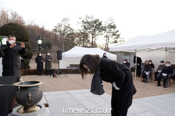 이날 참배는 코로나19 재확산 상황을 고려해 30여 명만 참석한 채 소규모로 진행됐다.
