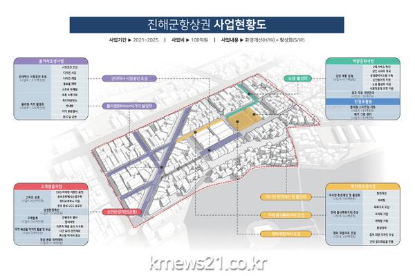 2021년 첫 발을 내딛은 ‘진해군항 상권르네상스사업’은 창원시 의회, 공무원, 지역 상인 및 주민, 전문가 등으로 구성된 상권활성화협의회가 조직됐으며, 상권활성화구역 지정 및 5개년 사업계획 발표, 진해군항상권활성화센터 설치, 대표브랜드 개발, 상인동아리 지원, 군항상권 홍보영상 제작 등 1년차 사업 13개, 사업비 10억원가량을 집행했다.