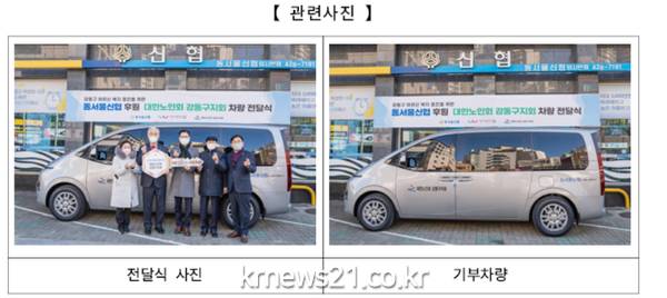 대한노인회 강동구지회 차량이 매우 노후하여 어르신들의 안전이 우려되었는데 이를 안타깝게 여긴 동서울신협에서 선뜻 기부의 뜻을 밝힌 것이다.