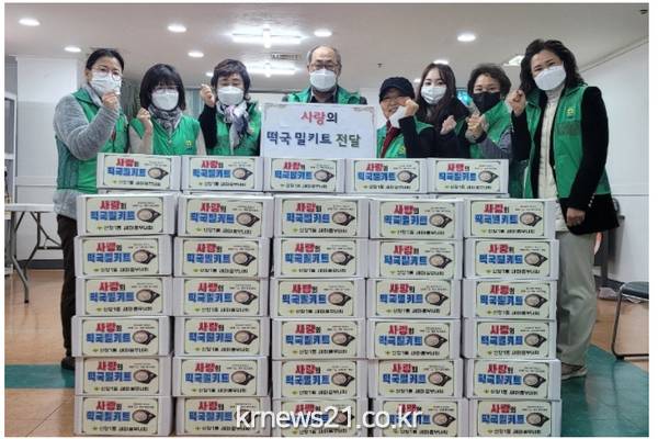 ▲ 사진=하남시하남시 신장1동 새마을부녀회는 민족 대명절인 설을 앞두고 이웃과 따뜻한 정을 나누고자 신장1동 행정복지센터에서 사랑의 떡국 밀키트 나눔 행사를 가졌다고 19일 밝혔다.