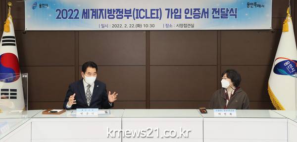 용인시가 22일 친환경 생태도시의 국제적 위상 확보를 위해 추진해 온 이클레이(ICLEI, 세계지방정부협의회) 공식 가입 인증서를 전달받고 정식 회원으로 활동을 시작한다.
