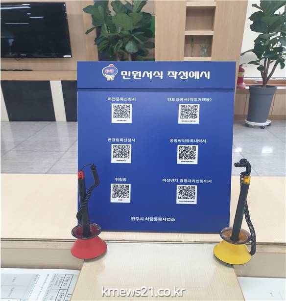 ▲ 사진=원주시원주시 차량등록사업소(소장 권오경)는 지난 3일부터‘QR코드를 활용한 민원실“ 운영에 들어갔다고 밝혔다.