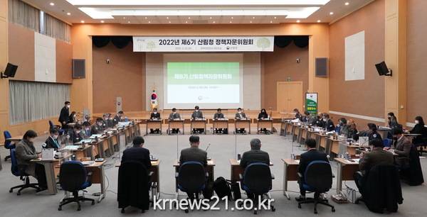 ▲ 사진=산림청산림청(청장 최병암)은 22일 정부대전청사 2동 대회의실에서 청장, 국장, 자문위원 등 40여 명이 참석한 가운데 ‘2022년 산림청 정책자문위원회’를 개최했다.