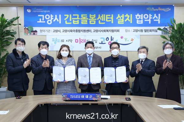 ▲ 사진=고양시고양시(시장 이재준)와 고양시육아종합지원센터 및 고양시사회복지협의회가 지난 22일 「고양시 긴급돌봄센터 설치」 지원을 위한 업무협약(MOU)을 체결했다.