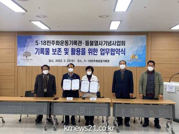 ▲ 사진=광주광역시5‧18민주화운동기록관은 23일 5‧18민주화운동기록관에서 들불열사기념사업회와 들불열사 관련 기록물 활용 및 기념사업 등 상호협력을 위한 업무협약을 체결했다.