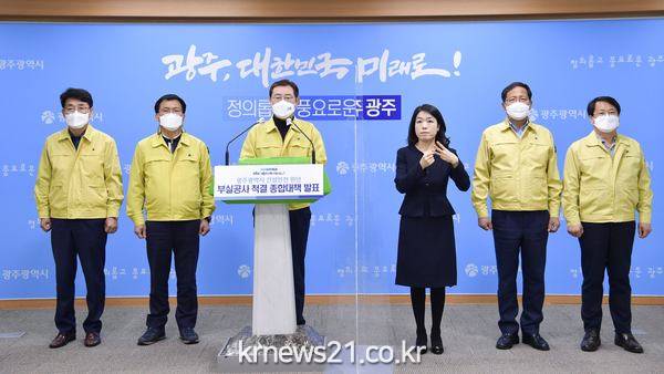 이 시장은 “지난 1월 화정동 현대아이파크 신축아파트 붕괴사고를 뼈아픈 교훈으로 삼아 부실공사를 척결함으로써 올해를 ‘광주 건설의 안전 원년’이 되도록 하겠다”고 밝혔다.