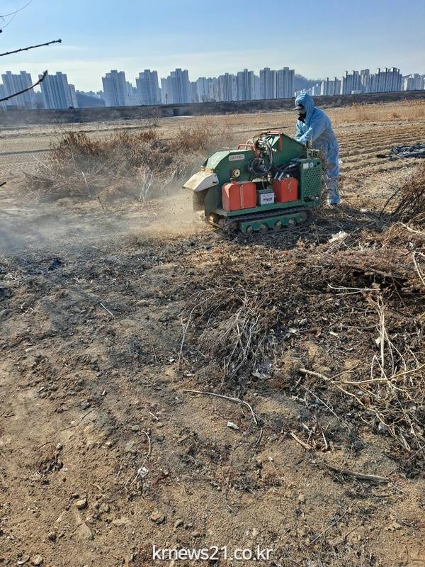 시흥시(시장 임병택)는 영농 부산물의 불법소각으로 인한 미세먼지와 산불 발생을 막는 데 총력을 기울인다. 이에 ‘2022년도 농업 잔재물 파쇄 작업’을 농번기 전에 마무리하고자 2월 21일부터 3월 31일까지 작업원을 7명 채용해 무료 지원한다.