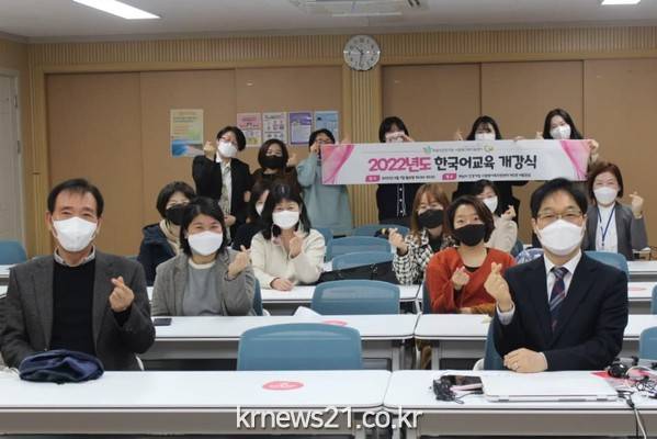 이날 열린 한국어 교육 개강식에는 김상호 시장, 최종윤 국회의원과 한국어교육 수강생을 비롯한 센터 이용자, 후원자, 유관기관 관계자 등 100여명이 줌(zoom)과 대면으로 참석했다.