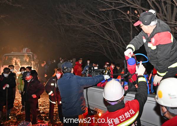 ▲ 사진=수원시3월 8일 밤 11시 40분께 광교산 일원에서 발생한 산불이 9일 오전 5시께에 완전히 진화됐다. 현재까지 확인된 인명 피해는 없다.