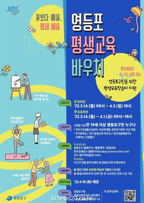 ▲ 사진=영등포구지난해 서울시 자치구 최초로 영등포(구청장 채현일) 구민 대상 20만 원 상당의 학습바우처를 지급해 평생배움의 문을 열었던 영등포평생교육바우처가 구민들의 큰 호응에 힘입어 수혜자 규모를 확대해 재운영된다.