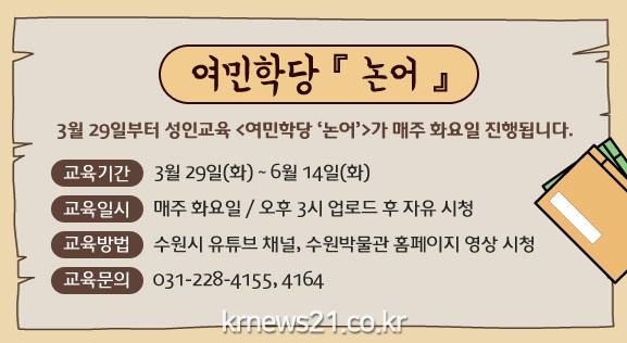 ▲ 사진=수원시수원박물관이 성인 대상 온라인 인문학 강좌 ‘여민학당(與民學堂)’의 논어 강의 수강생 30명을 3월 22일까지 선착순으로 모집한다.