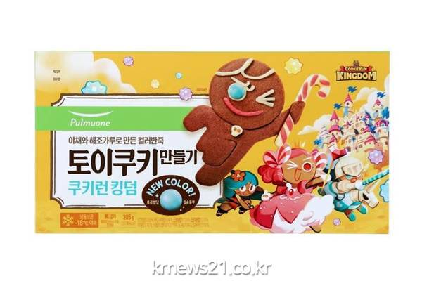신제품 ‘토이쿠키 쿠키런 킹덤’은 글로벌 인기 게임 ‘쿠키런: 킹덤’의 세계관을 충실하게 반영한 것이 특징이다. 쿠키런을 대표하는 ‘용감한 쿠키’를 비롯하여 ‘공주맛 쿠키’, ‘용사맛 쿠키’, ‘정글전사맛 쿠키’ 등 인기 캐릭터와 아이템을 트레이에 담았다. 반죽을 트레이에 넣고 찍어내면 누구나 쉽게 쿠키런 캐릭터를 만들 수 있다.