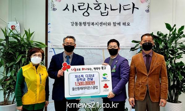 울산동해라이온스클럽은 강동동 지역사회보장협의체의 추천을 받아 조손가정과 한부모가정 등 어려운 환경에서 학업을 이어가고 있는 학생들의 건전한 성장을 지원하기 위해 이번 장학금을 전달했다.