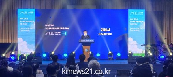 군포시는 3월 17일 시청 대회의실에서 유니세프 아동친화도시 인증 선포식을 갖고, 인증의 의미를 되새기면서 아동친화도시로서의 역할을 다짐했다.