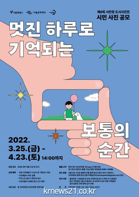 ▲ 사진=서울문화재단서울문화재단(대표이사 이창기)이 서울특별시(시장 오세훈)와 ‘제9회 시민청 도시사진전: 멋진 하루로 기억되는 보통의 순간’(이하 도시사진전) 공모에 참여할 사진 작품을 25일(금)부터 4월 23일(토)까지 접수한다.