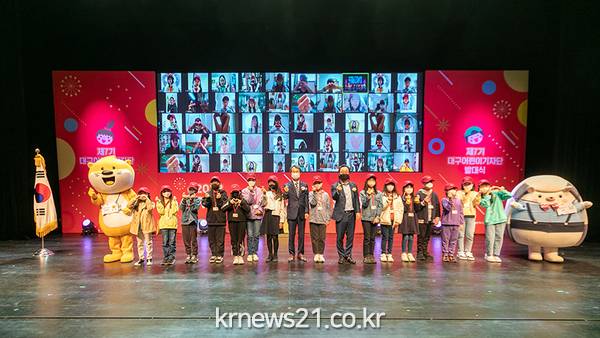 ▲ 사진=대구광역시대구시는 제7기 대구어린이기자단 발대식을 3월 26일(토) 오후 2시 문화예술회관 팔공홀에서 개최했다. 본 행사는 오미크론 확산세로 어린이기자, 학부모 등 200여 명은 현장에 참석하고, 어린이기자 150여 명은 온라인으로 참여했다.