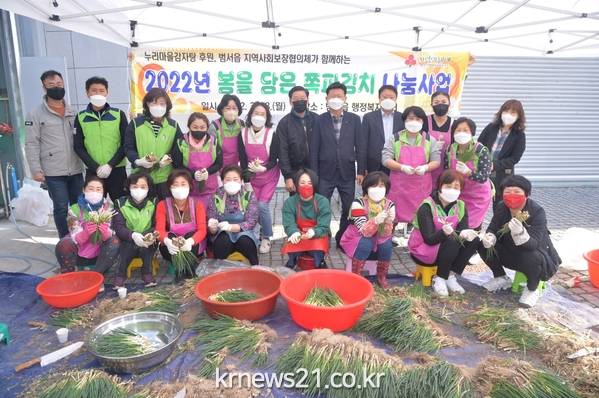 ▲ 사진=울산광역시 울주군범서읍 지역사회보장협의체(공동위원장 윤종칠, 백문현)는 28일 범서읍 행정복지센터에서 봄철을 맞이해 관내 저소득층에 직접 담근 쪽파김치를 전달하는 나눔 행사를 진행했다.