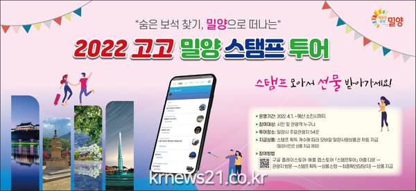 ▲ 사진=밀양시밀양시(시장 박일호)가 관광객의 참여형 관광을 유도하고, 밀양의 알려지지 않은 명소를 홍보하기 위해 4월 1일부터 ‘고고(GoGo) 밀양 스탬프 투어’를 운영한다.