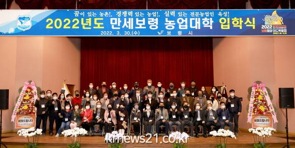 시는 30일 농업기술센터 농업교육관에서 김동일 시장과 입학생 등 90여 명이 참석한 가운데 2022년도 만세보령 농업대학 입학식을 가졌다.